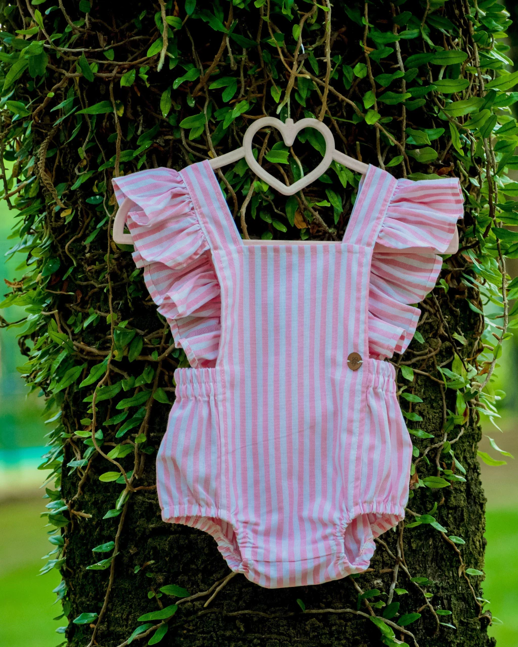 É o toque mais suave para a pele do seu bambino, garantindo que o dia seja apenas de sorrisos e conforto puro.ROMPER BABADO CAPRI ROSA