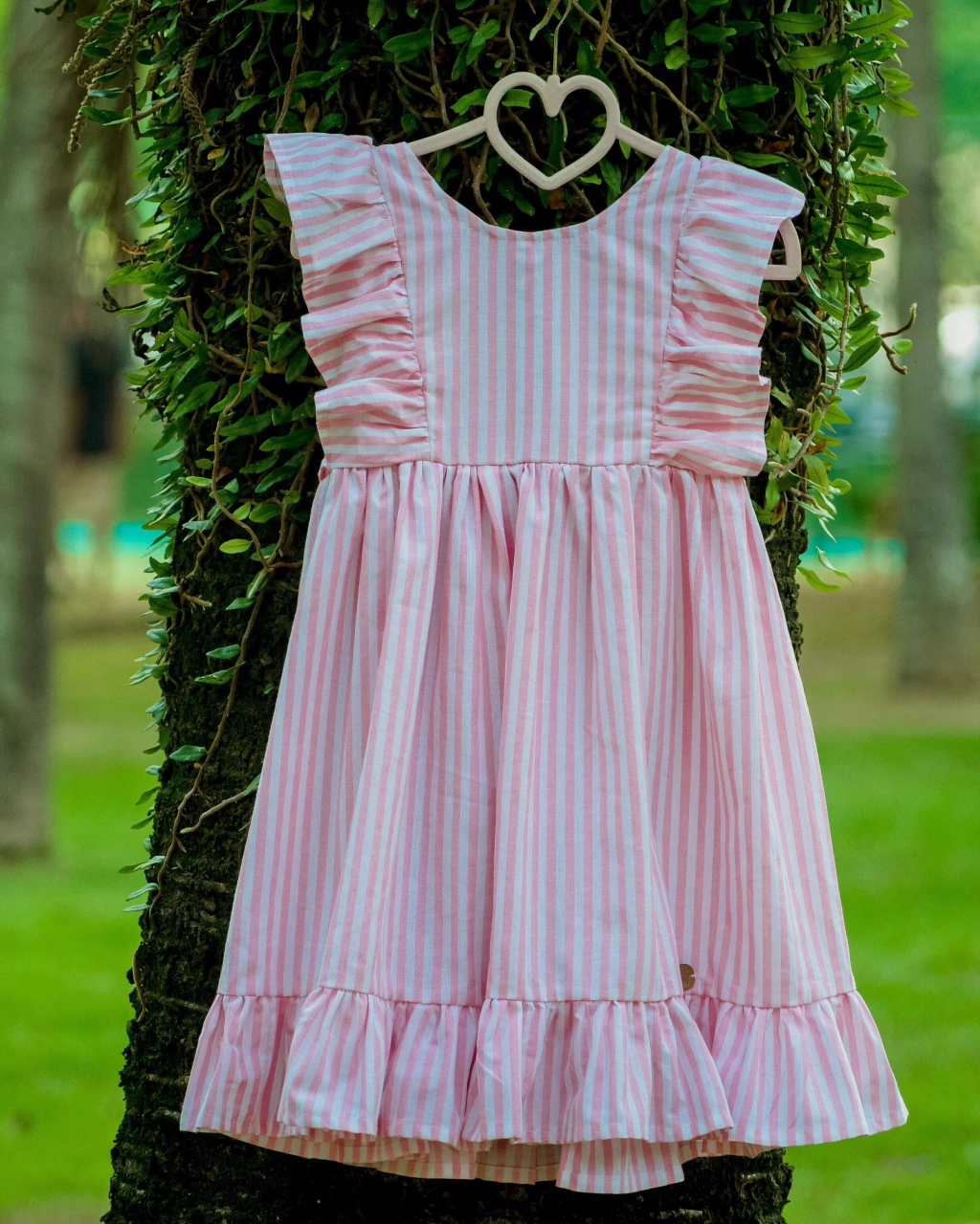 O Vestido Babado Capri Rosa é delicado, moderno e confortável, ideal para momentos especiais ou o dia a dia. Com listras suaves, babados nas alças e elástico nas costas, proporciona charme e liberdade para as pequenas. Acompanha laço de cabelo para completar o look!Material: